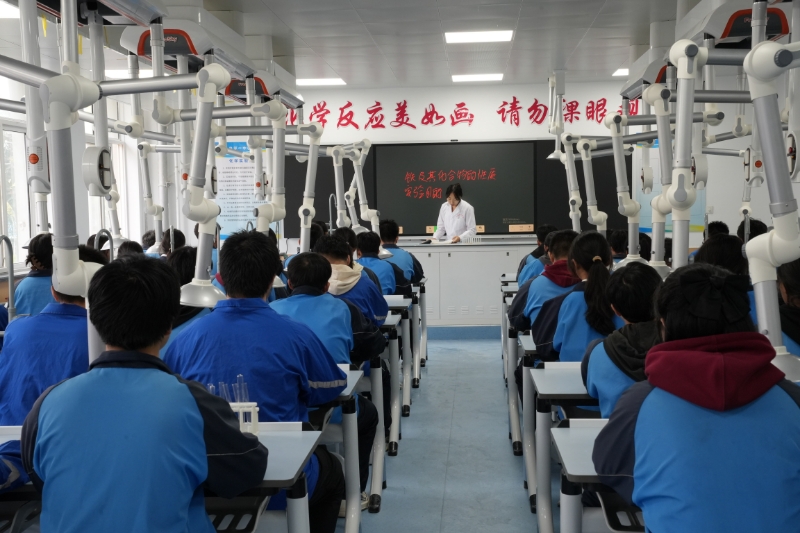 甘肃省陇南市成县第一中学高一年级学生在实验室里做化学实验。(受访者供图)