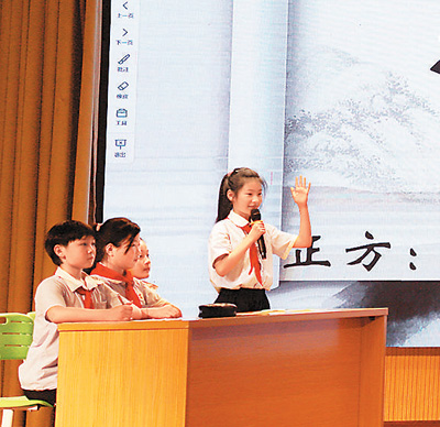 江苏省徐州市铜山区新区实验小学学生在辩论。