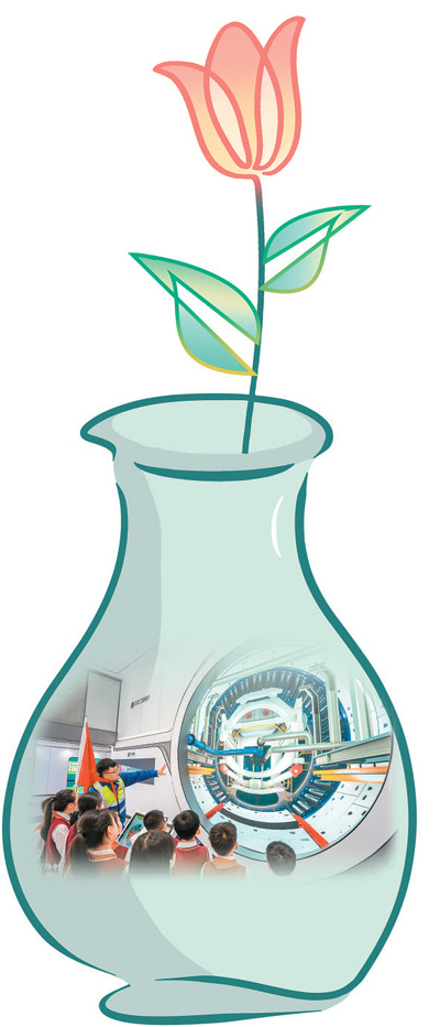 江苏省南通市海门区新教育小学的学生们在海太长江隧道智慧中心参观。