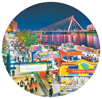 博览会期间,市民在宁波市江北区老外滩品尝中东欧美食。