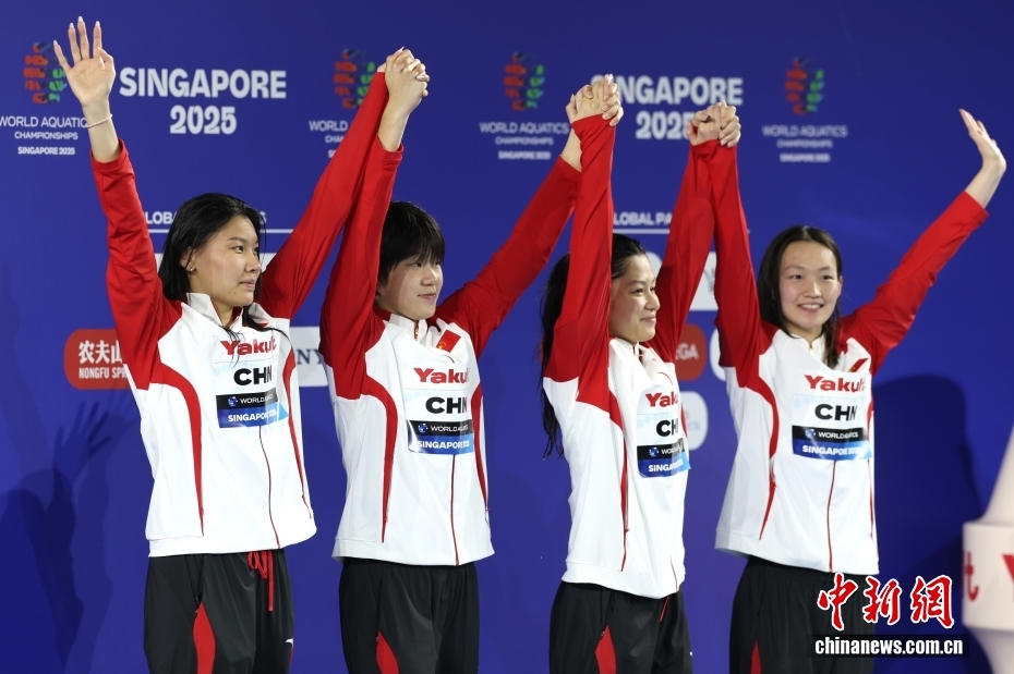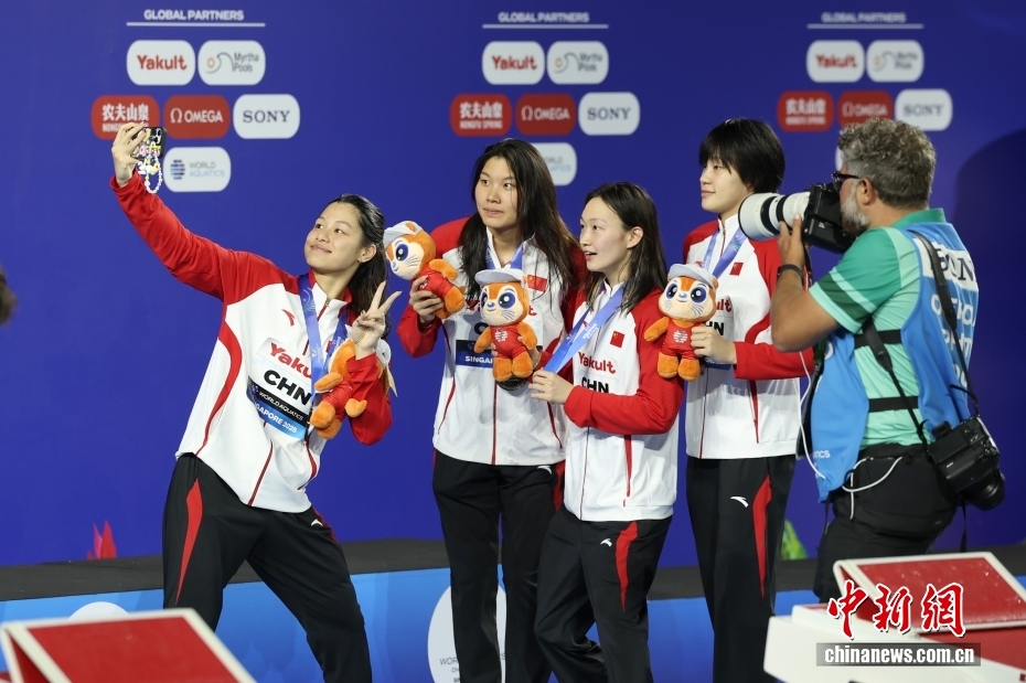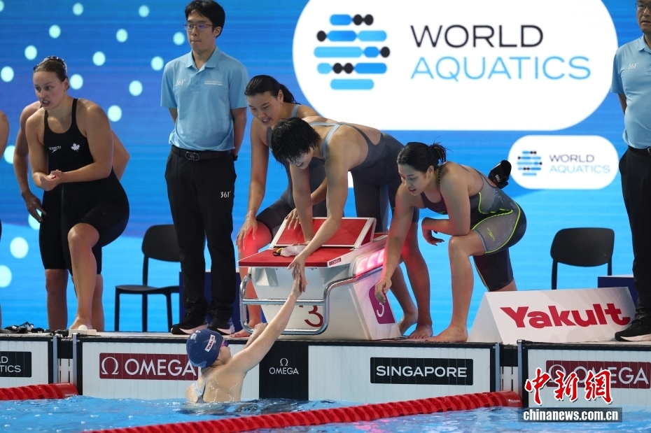 7月31日,在新加坡举行的2025年世界游泳锦标赛女子4x200米自由泳接力决赛中,由柳雅欣、杨佩琪、余依婷、李冰洁组成的中国队以7分42秒99摘得铜牌。图为李冰洁在比赛中。