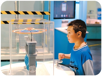 7月30日,小朋友在湖南省科学技术馆体验科普设备,感受科技魅力,丰富暑期生活。