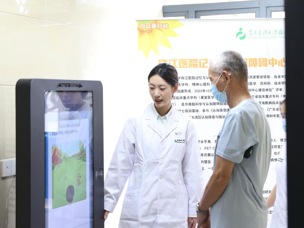 一位老年居民在医生指导下体验南方医科大学珠江医院研发的互动式AI认知早筛设备相关功能。新华社发