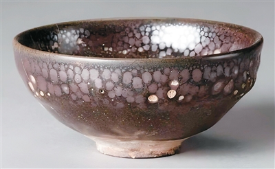 元代黑釉油滴瓷碗。