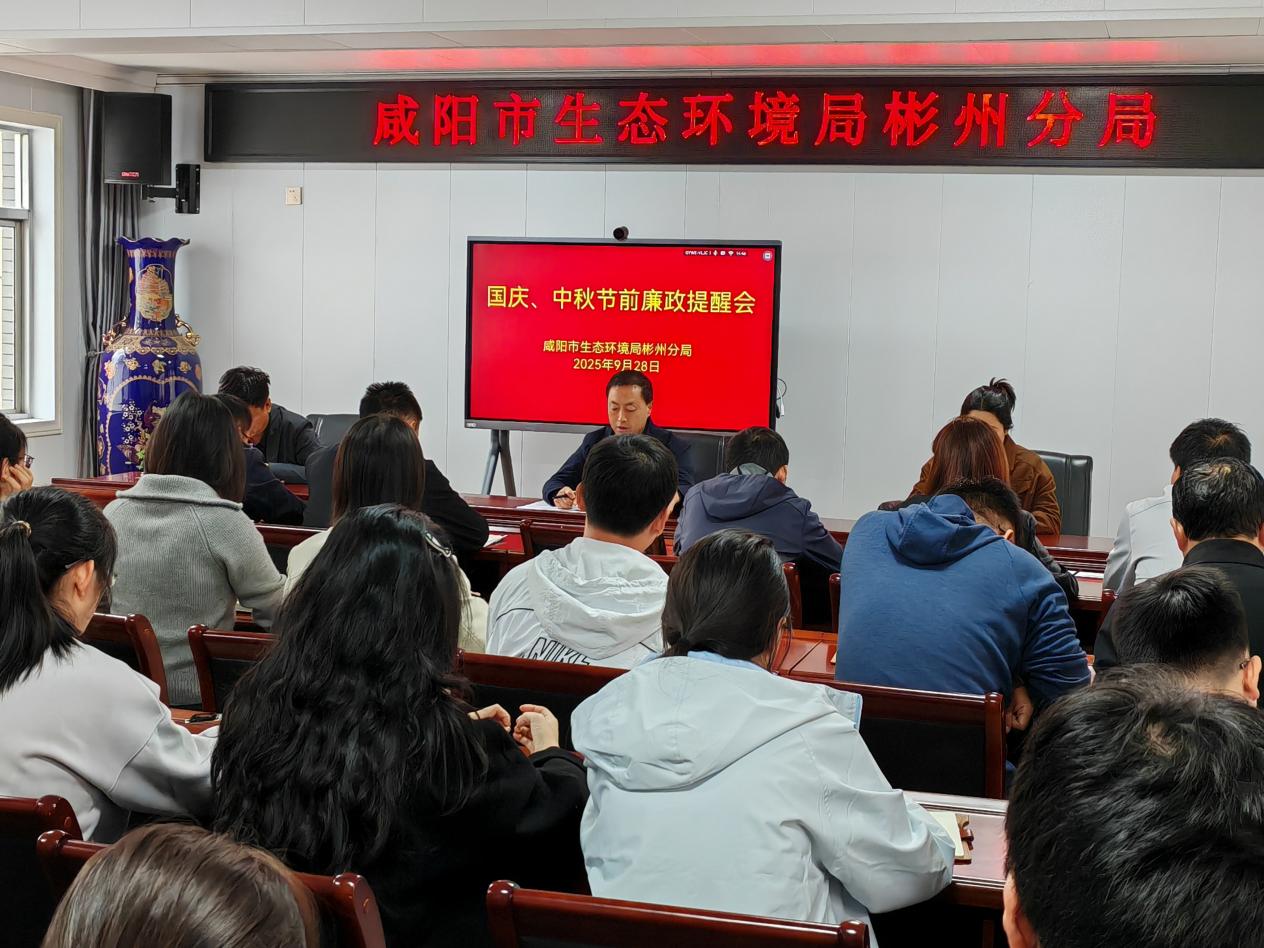 本报讯(通讯员 安昭)为进一步严明纪律规矩,深化党风廉政建设,筑牢党员干部廉洁自律防线,9月28日,咸阳市生态环境局彬州分局召开国庆、中秋节前廉政提醒会,全体干部职工参会。