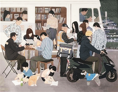 书香飘村镇(中国画)