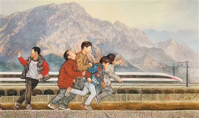 高铁进山啦(中国画)