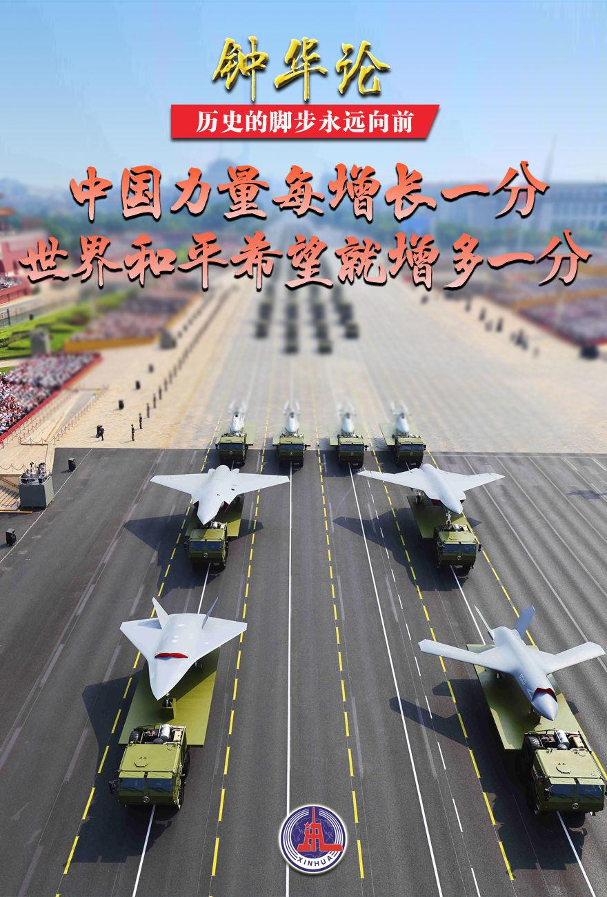中国的高端武器、尖端技术频频亮相,引起世界的广泛关注。“幸好这样的重器掌握在文明手中”,外国网友的感言,折射出国际社会的普遍认同:中国力量每增长一分,世界和平希望就增多一分。无论国际风云如何变幻,中国始终坚持以和平发展超越冲突对抗,以共同安全取代绝对安全,以互利共赢摒弃零和博弈,以交流互鉴防止文明冲突,以绿色发展呵护地球家园,为动荡不安的世界注入了宝贵的稳定性和正能量。