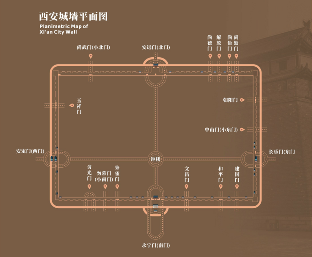 以城门防御体系为核心,通过图文、模型与影像,系统阐释闸楼、箭楼、瓮城等建筑的军事功能与空间逻辑,并讲述18座城门的历史沿革与文化故事,展现西安城墙作为古代城防体系的完整性与科学性。