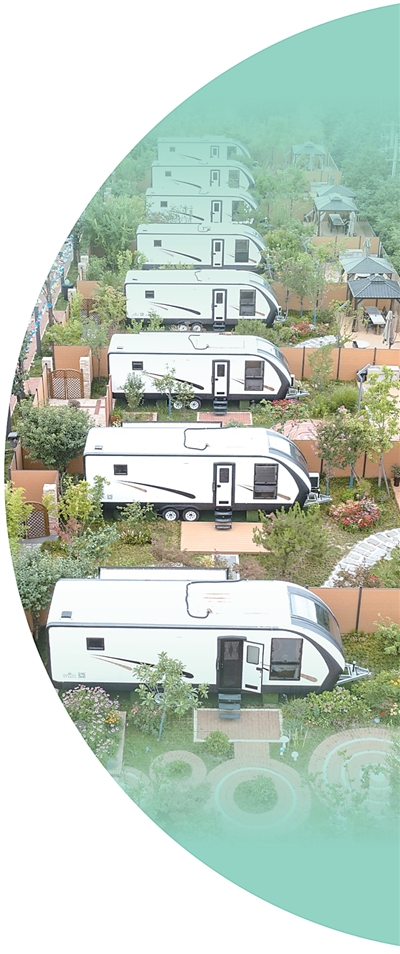 陕西西安外环高速公路子午服务区是一座开放式文旅休闲运动主题服务区。田园采摘、休闲运动、科技体验……服务区内既像商场又像景区。图为西安子午服务区内设施齐全的房车营地。