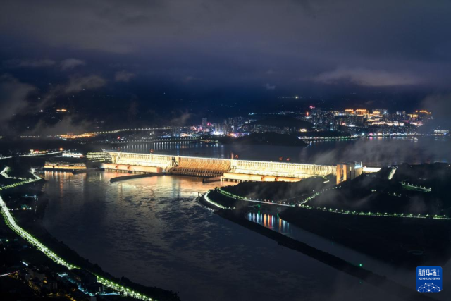 10月3日夜间拍摄的三峡大坝。新华社记者 陈晔华 摄