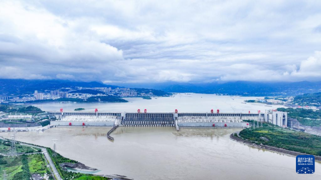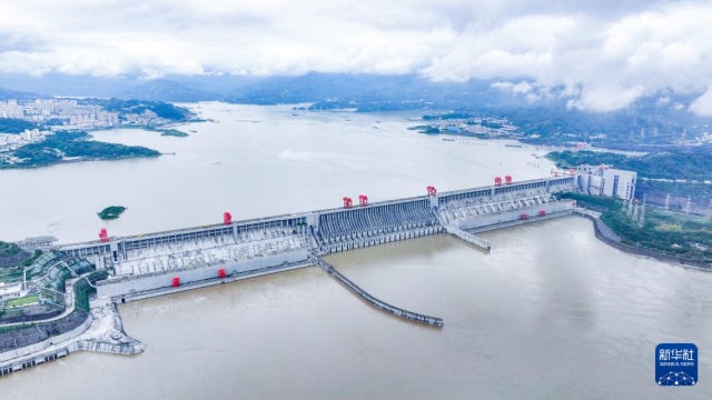 连绵阴雨初歇,位于湖北宜昌的三峡大坝云雾缭绕,气象万千。
