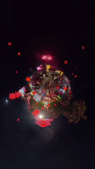 360相机拍摄的海丝首港烟花秀。新华社记者 黄凯莹 摄