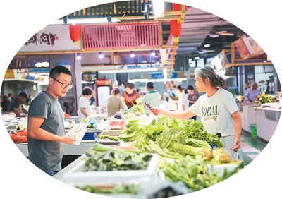 近年来,江苏省如皋市如城街道将小菜场改造升级作为民生实事工程大力推进,全力打造让群众满意的“菜篮子”。图为近日,市民在刚刚升级改造后的如城街道东皋农贸市场选购菜品。