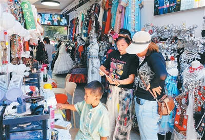 来自安徽的黄女士,满怀欣喜地走进一家旅拍店,还未进门就笑着打招呼:“佟姐,我来了!还是你家服装好看,就选你家!”店主佟锭颜立即迎上前,拉起黄女士的手往里走。