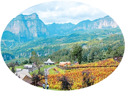 湖北省恩施土家族苗族自治州恩施市屯堡乡马者村的地肤草“花海”秋景。