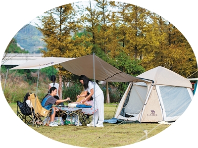 秋高气爽,重庆市南川区黎香湖镇湿地生态园,美丽的秋色吸引不少游客前来打卡露营。