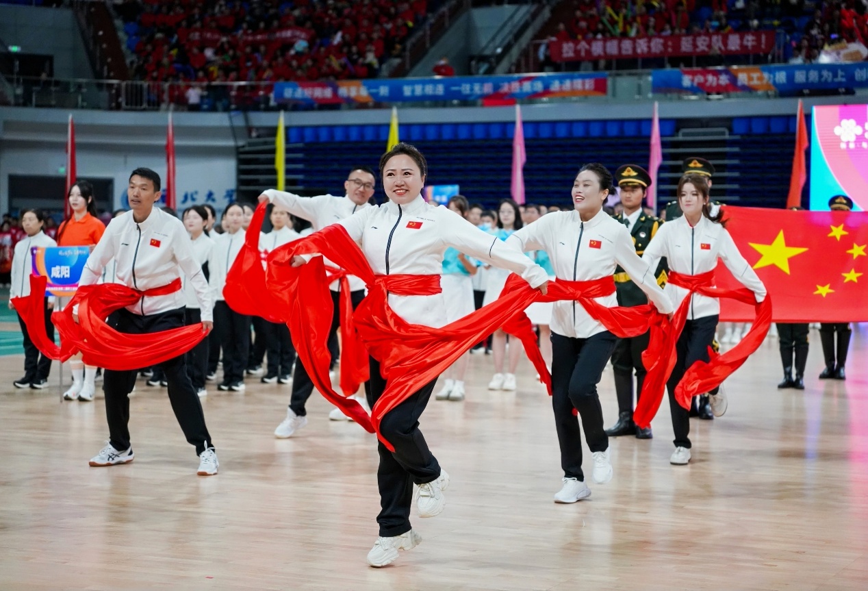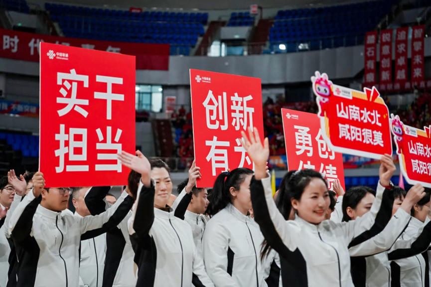 文艺表演环节,西安分公司带来饱含温暖与力量的歌舞表演《年轻的战场》,让大家在动人的氛围里,感受初心与使命。榆林绥德县分公司干部员工齐上阵,带来欢快奔放的陕北秧歌表演,不仅展现了榆林地域文化的鲜活生命力,更以极具特色的艺术表达,为参赛运动员们加油鼓劲、“惊艳”助兴。铜川分公司员工用真挚的演绎献唱《我和我的祖国》,把对祖国的热爱、对联通事业的赤诚融入旋律与姿态中,激发强大的精神力量。青春洋溢的啦啦操表演,更是以灵动舞步踏响欢乐节拍,用灿烂笑容传递联通热情,每一个动作都绽放奋进光芒,为运动盛会拉开活力满满的序幕。