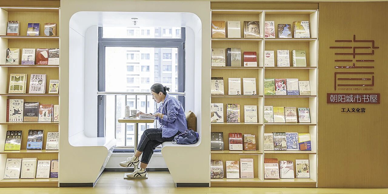 北京市朝阳区的朝阳城市书屋·工人文化宫馆内,读者在阅读区认真读书。书屋不定期组织开展非遗技艺体验、读书分享会等主题活动,为读者提供丰富的文化体验。人民日报记者 张武军 摄
