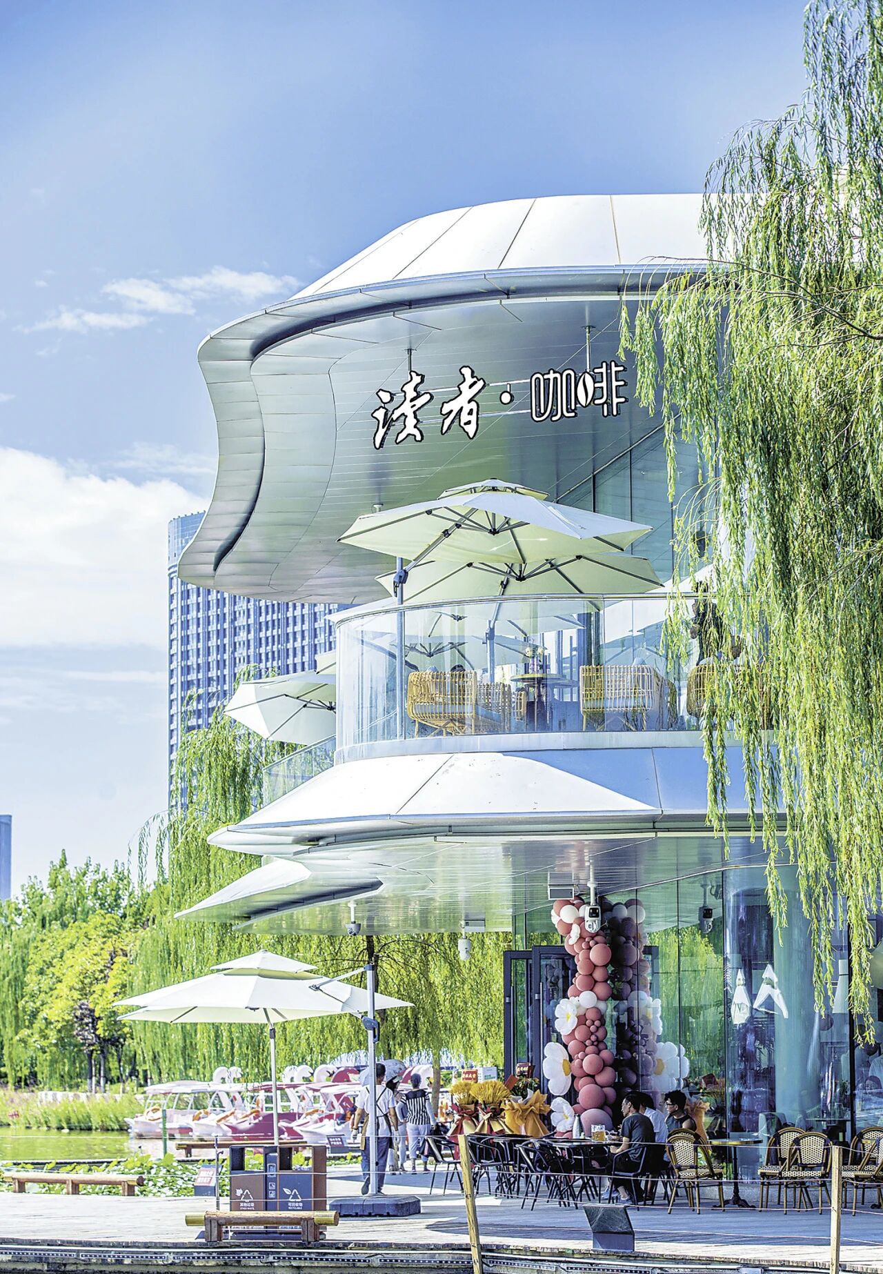 位于甘肃省兰州市雁滩公园的读者咖啡馆外景。在这家城市书房里,馥郁的咖啡香气点缀着读者的阅读时光。银燕 宋泽祥 摄影报道