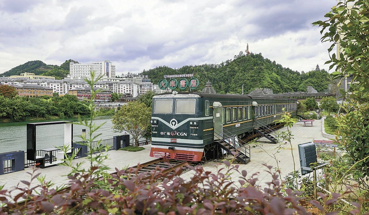 贵州省铜仁市玉屏侗族自治县利用废弃火车车厢打造火车书屋,不断拓展城市阅读空间。胡攀学 摄