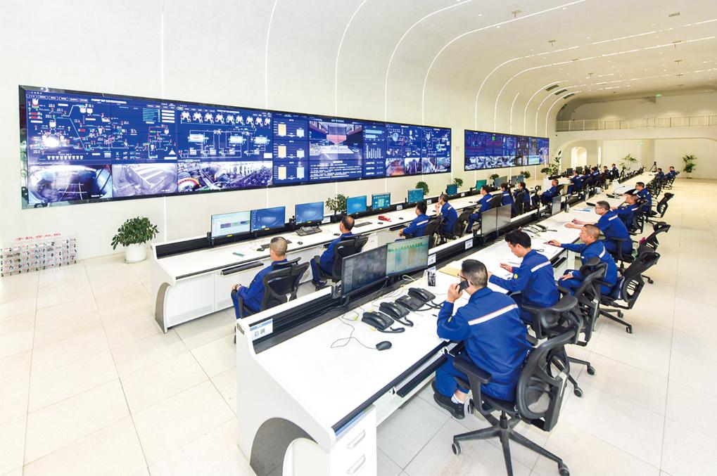 工人们在大冶铁矿智控中心调度采矿、选矿等工作。(受访单位供图)