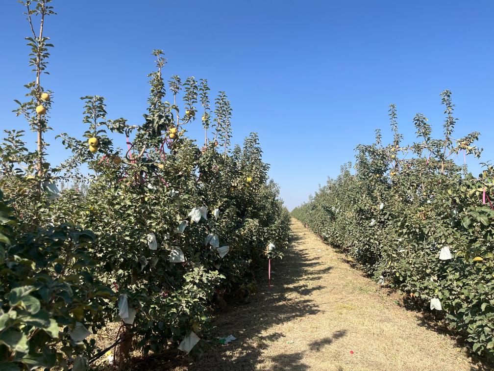 新疆喀什地区泽普县斯日木村挂满果实的苹果林。新华社记者杨林 摄