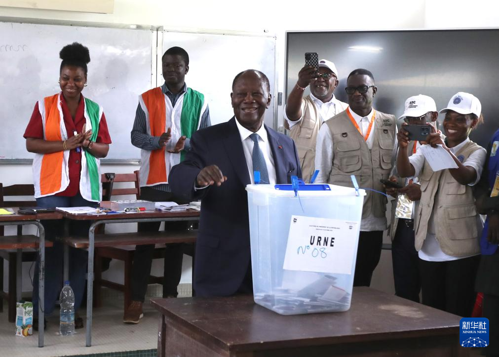 这是10月25日在科特迪瓦阿比让拍摄的统一党候选人、现任总统阿拉萨内·瓦塔拉参加大选投票的资料照片。新华社发(伊万·宋摄)