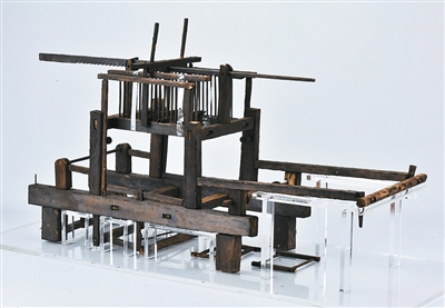 西汉滑框型一勾多综提花木织机模型。