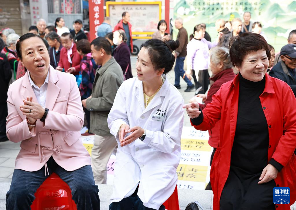 10月28日,湖北省人民医院医务人员为武汉市武昌区黄鹤楼街道读书社区老年人提供音乐疗法服务。