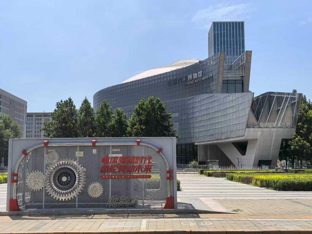 图为汽车博物馆北侧广场的变电箱“变身”为一件工业艺术品。新华社发