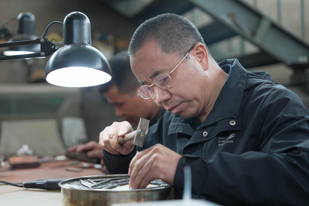 “产业发展倒逼技艺创新,也让传承模式悄然改变。”银铜器制作及鎏金技艺国家级代表性传承人何满告诉记者,为了扩大本地银铜器知名度,他和其他传承人积极参加省内外各类博览会。“全国各地跑,大大小小行李箱用坏了六七个。”何满说。