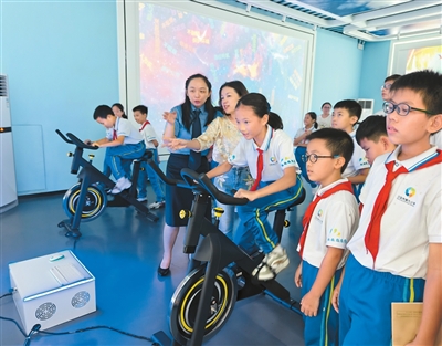 在三亚市青少年法治教育基地,三亚市城郊检察院检察官通过做游戏向学生普法。