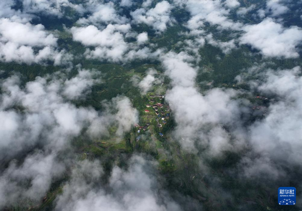 群山环抱的广西融水苗族自治县杆洞乡党鸠村(无人机照片,2025年10月16日摄)。