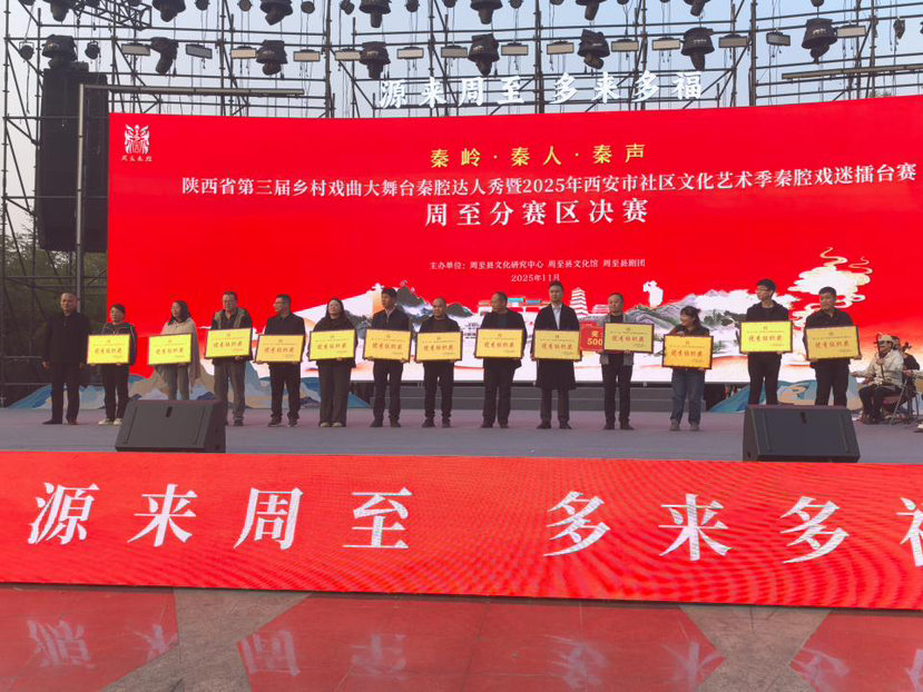 本次活动由省、市、县多部门协同推动,是深化基层公共文化服务、打造“秦岭·秦人·秦声”戏曲文化品牌、促进乡村文化振兴的具体举措,也是擦亮“周至秦腔戏窝子”文化品牌、推动乡村振兴的重要实践。决赛现场,20名从前期海选、周赛中脱颖而出的选手依次登台,以饱满的唱腔和精湛的表演,展现了秦腔艺术的独特韵味与深厚功底。经专业评审,最终评选出一、二、三等奖及优秀奖,现场颁发奖杯及奖金,并对二曲街道、终南镇、哑柏镇等13个镇(街)授予优秀组织奖,以表彰其在活动组织与基层文化建设中的积极贡献。