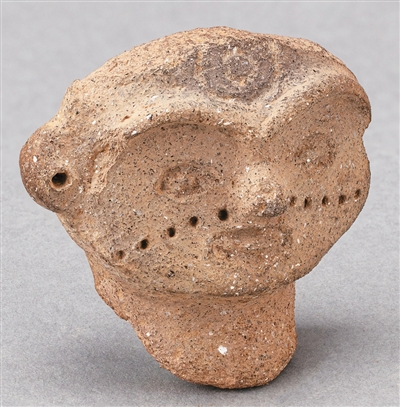 新石器时代双墩文化陶塑雕题纹面人头像。