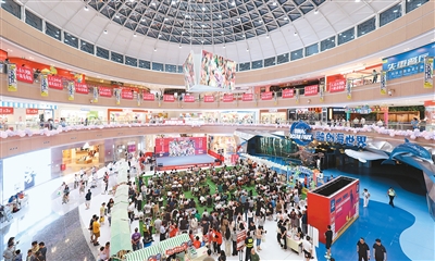 近年来,重庆市沙坪坝区通过整合购物、餐饮、娱乐、健身、书屋等多功能业态,打造“一站式”消费场景,满足消费者多元化需求,有效激活了城市消费潜力。图为消费者在沙坪坝区一家商场购物。