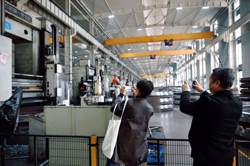 “我们的风电板块是从给东方电气集团做配套起家的,通过不断的技术突破,把年销售收入从20多年前的200万元做到了去年的40亿元。”在天马轴承的风电轴承二车间,该公司销售总监范佳桥一边向各位社长、总编和资深记者们介绍风电轴承的加工环节,一边讲述企业的发展故事。