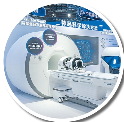 在本届进博会医疗器械及医药保健展区,磁共振引导聚焦超声脑部治疗系统、无液氦脑磁图仪等先进医疗器械一齐亮相。