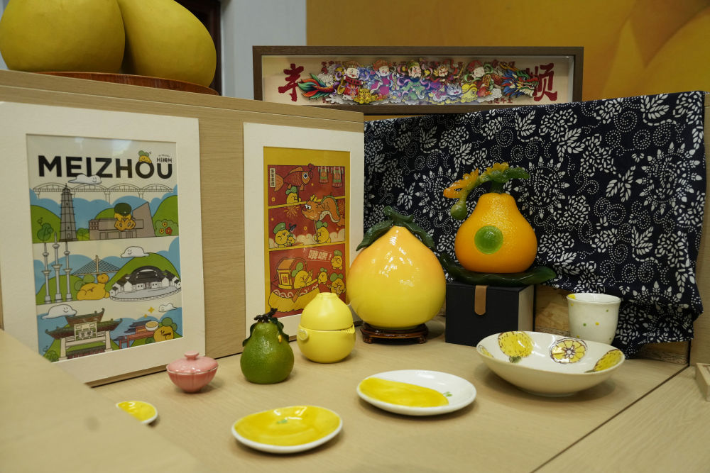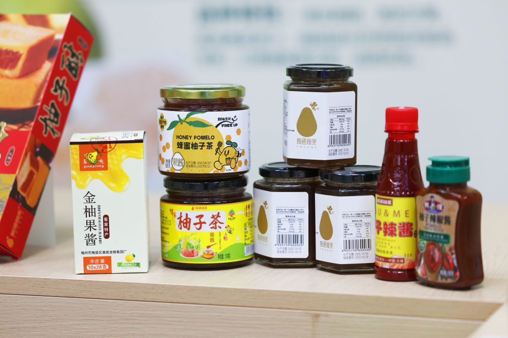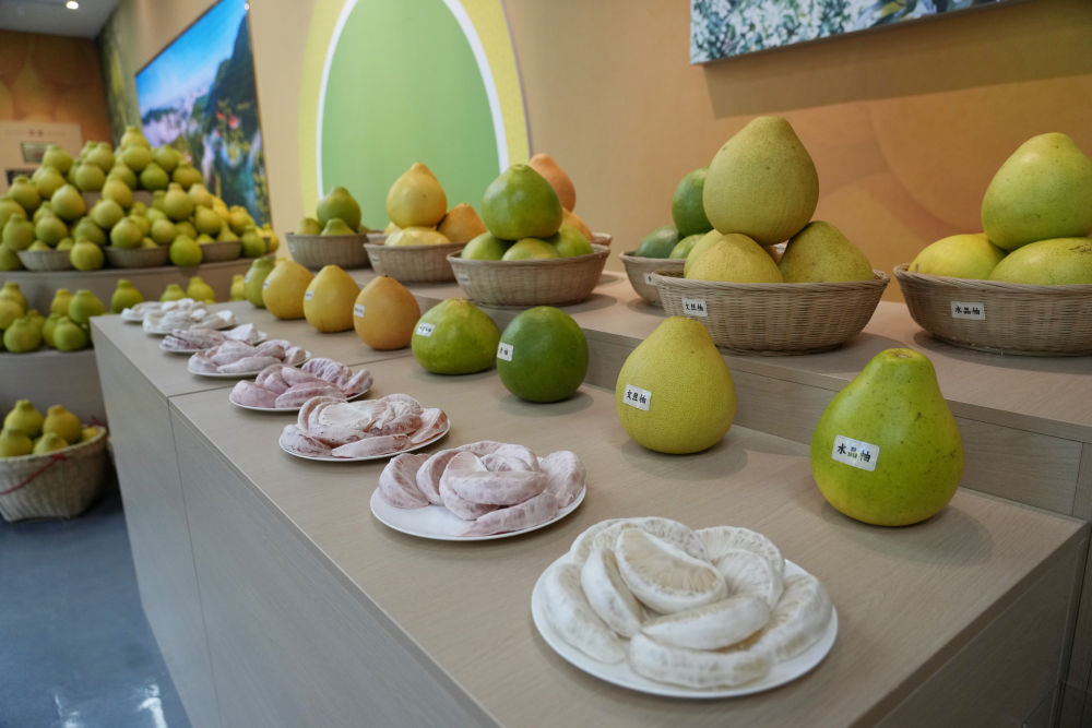 2025年11月7日在梅州南福金柚种植基地拍摄的金柚及相关产品。