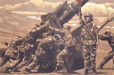 版画《大漠砺兵》,作者墨建杰。