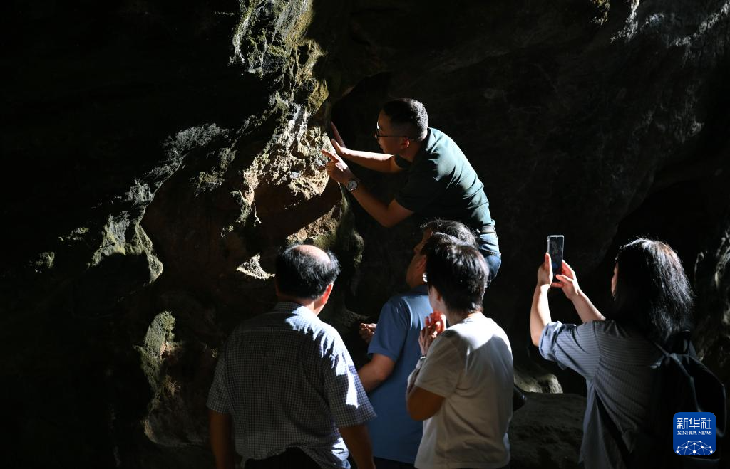 11月8日,考古专家在三亚落笔洞遗址观察发掘现场。新华社记者 郭程 摄