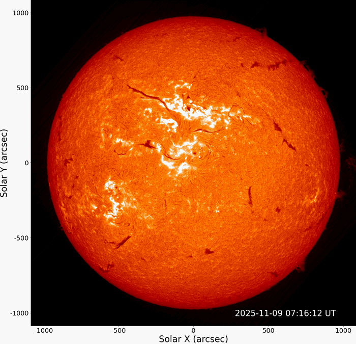 这是“羲和号”北京时间11月9日15时35分观测到的X1.7级耀斑。(南京大学太阳科学数据中心供图)
