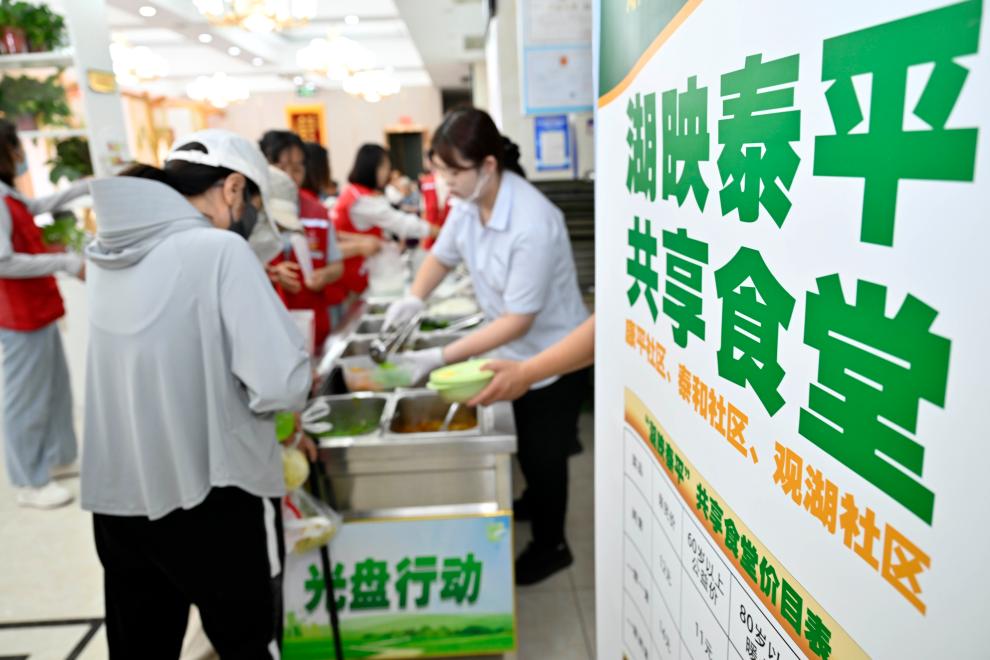 6月26日,居民在宁夏银川市兴庆区“湖映泰平”共享社区食堂就餐。新华社记者 王鹏 摄