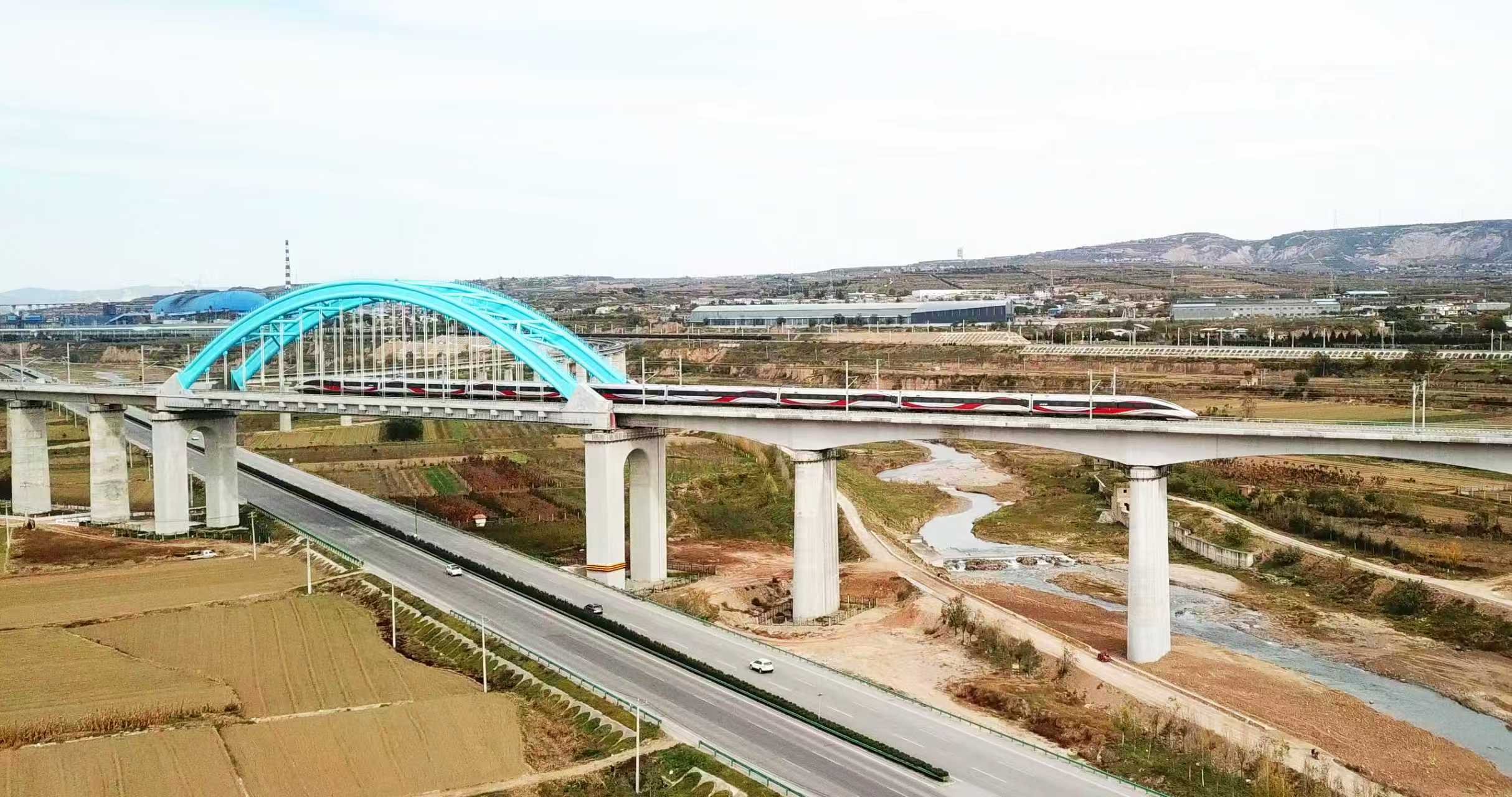 作为国家“八纵八横”高铁网包(银)海通道的核心组成部分,西延高铁正线全长299.8公里,建设标准为双线高速铁路,设计速度350公里/小时。新建高陵、富平南、铜川、宜君、黄陵等8座站房;扩建甘泉北、延安2座站房,途经西安、渭南、铜川、延安等城市。线路穿越黄土高原沟壑区,地质条件复杂,桥隧比高达91%,其中隧道47座、特大及大中桥梁67座,建设与调试难度位居国内高铁前列。