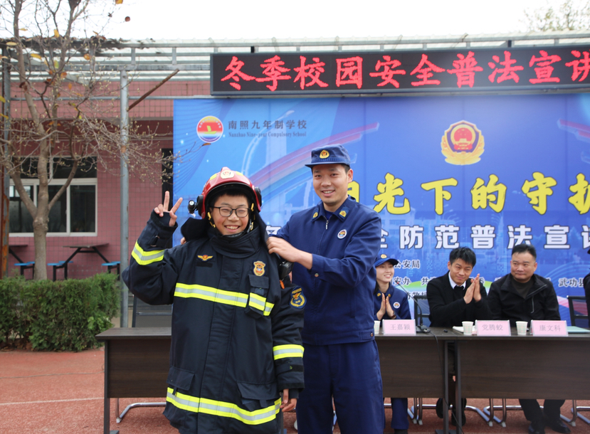 本报讯(记者 李勇)为深入推进“金盾护苗”专项工作部署,切实守护青少年健康成长,11月14日,陕西省武功县委国安办、共青团武功县委联合县公安局、教育局、司法局、消防救援大队六部门,走进南照九年制学校开展“阳光下的守护”冬季安全防范普法宣讲活动。活动以“普法宣讲+互动体验”模式,为师生送上实用易懂的安全法治教育课,让法治暖流浸润冬日校园。
