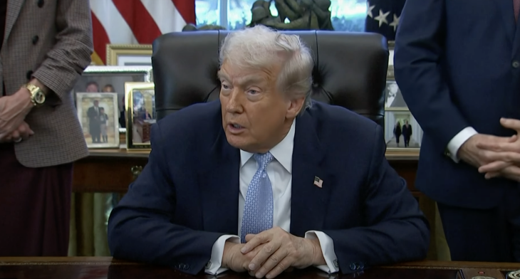 当地时间11月17日,特朗普在白宫椭圆形办公室称将批准向沙特出售F-35战斗机。图源:外媒视频截图