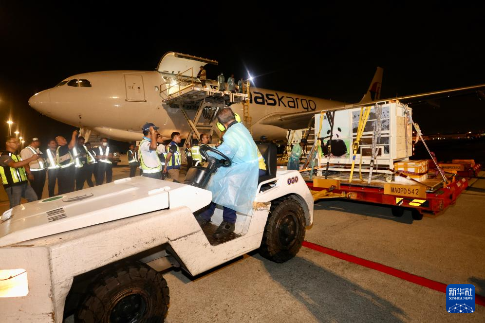新华社吉隆坡11月18日电(记者王嘉伟 程一恒)大熊猫“辰星”“晓月”18日晚搭乘专机抵达马来西亚首都吉隆坡。这是继今年5月大熊猫“福娃”“凤仪”回国后,又一对大熊猫前往马来西亚国家动物园旅居,开启新一轮为期10年的中马大熊猫保护合作研究。