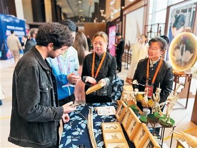 第七届中法文化论坛期间,法国嘉宾体验湖南非遗草编技艺。