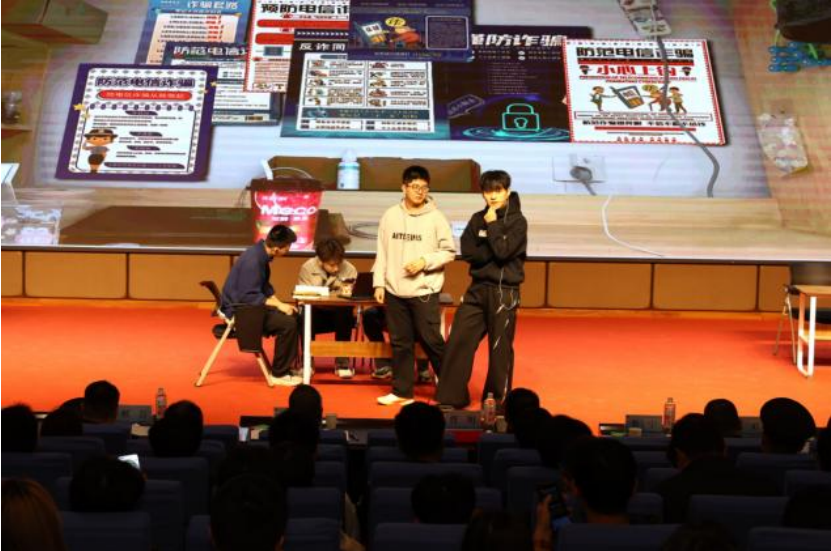 情景剧《刷单的陷阱》学生志愿者扮演的“刷单客”,从初得佣金的窃喜到本金被套的崩溃,生动还原了诈骗分子的套路;而《裸聊被骗》的剧情,明知被骗还要给骗子转所谓的“买视频封口费”更是让现场同学发出惊叹!“对方发的‘身份证’可能是P的,‘甜言蜜语’背后都是话术!”民警的即时点评,让剧情里的“坑”变成了反诈知识点。